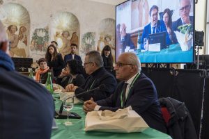 Al tavolo dei relatori, la Dirigente generale della Direzione Generale per le Politiche Agricole, Alimentari e Forestali, Emilia Piemontese; l’Autorità di Gestione del PSR Basilicata Vittorio Restaino e il Prof. Severino Romano, Ordinario di Economia e ed estimo rurale