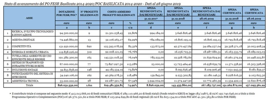 avanzamento PO 28 giugno 2019_sito La relazione sullo stato di attuazione del Programma Operativo FESR Basilicata 2014-2020 alla data del 28 giugno 2019 è consultabile al seguente link: