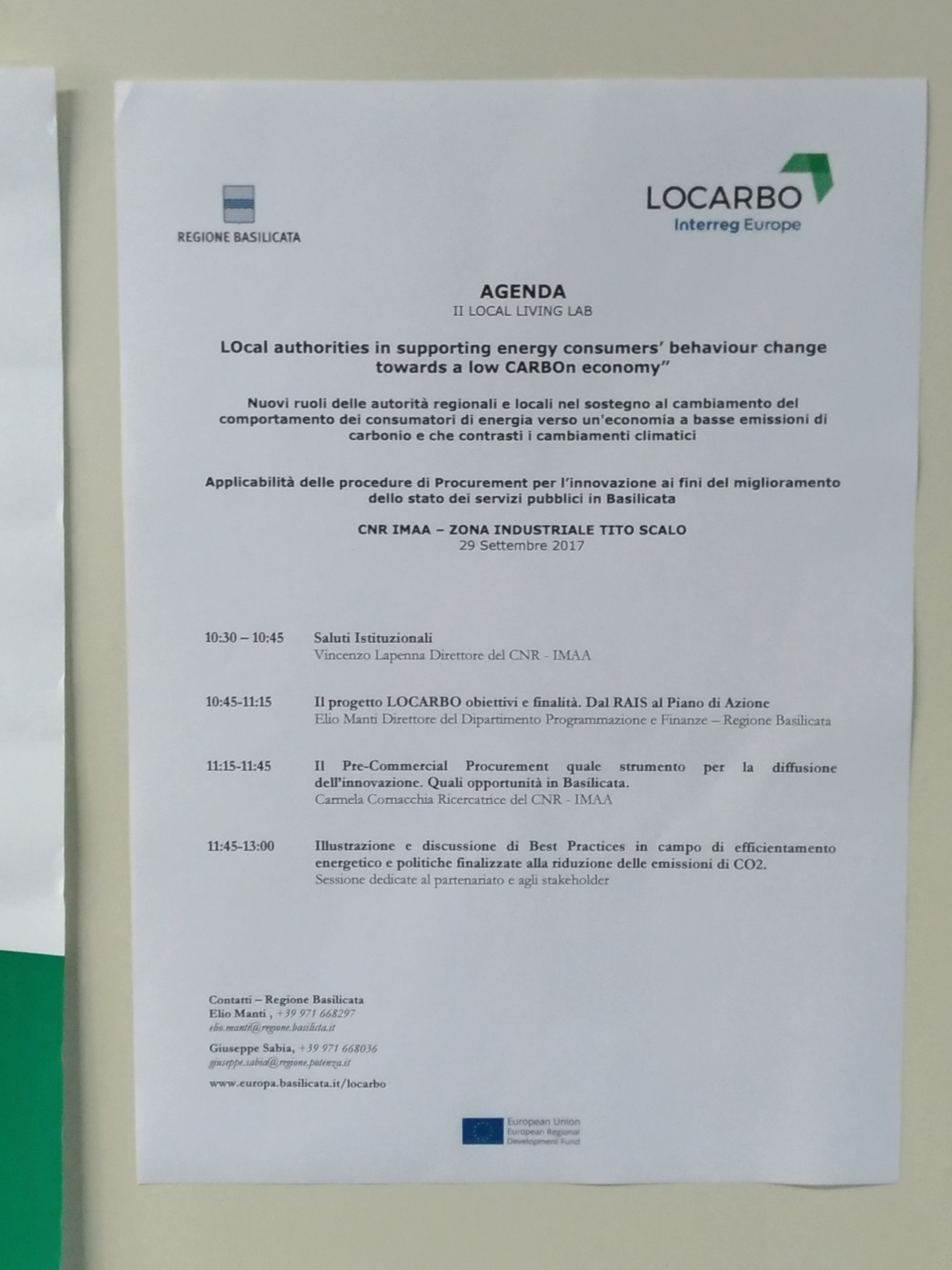 Progetto LOCARBO per la Regione Basilicata